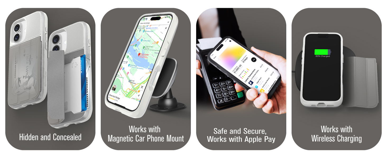 • [Patented Wallet Case Compatible With iPhone 17 (6.3")] vCommute combines functionality and protection. The hidden card slot securely stores IDs, credit or debit cards, or even transit cards; plus it does not interfere with Apple Pay. Compatible with iPhone 17 (6.3").