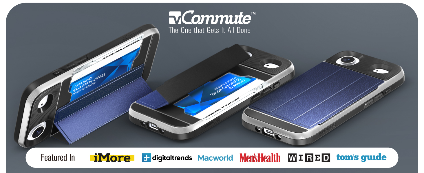 The vCommute credit card case is designed with precision cut-outs and provides effortless access to all ports, buttons, and features of your phone. The power and volume buttons are crafted to maintain the same great tactile feedback as your phone's buttons.