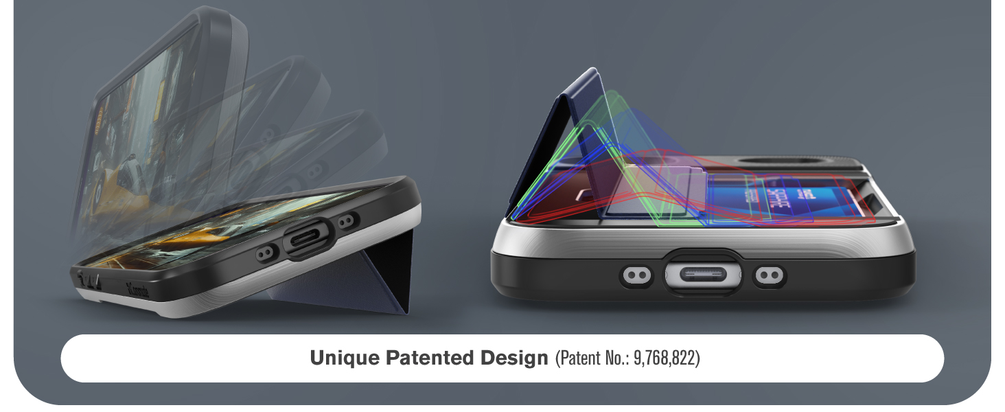 This unique and versatile card holder case features a tough leather cover that folds up to a kickstand, giving you the convenience to watch videos and movies at your desired angle.