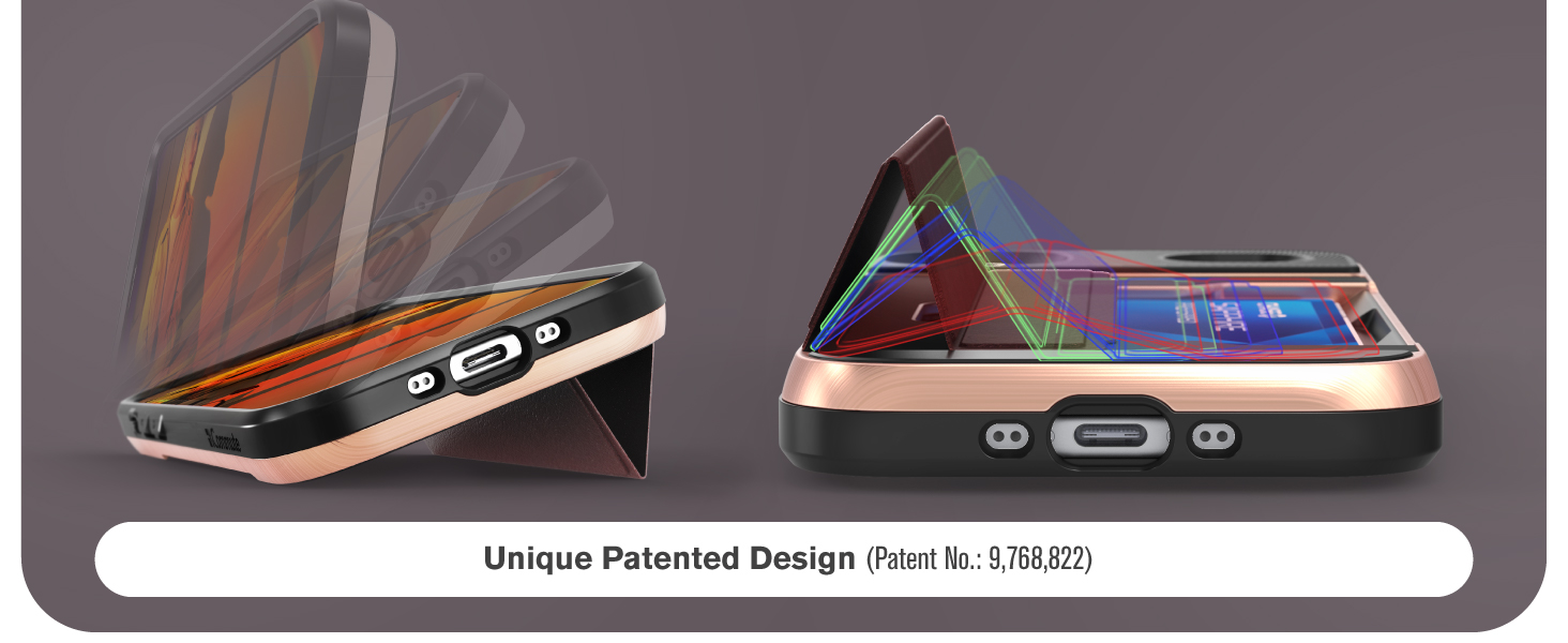 This unique and versatile card holder case features a tough leather cover that folds up to a kickstand, giving you the convenience to watch videos and movies at your desired angle.