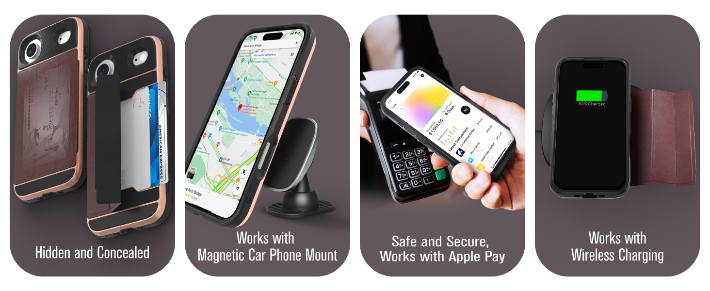 With Vena's patented vCommute wallet case, conveniently store up to 3 cards such as your ID or credit/debit cards, in the hidden card holder slot on the back of the case. Better yet, vCommute even works with Apple Pay. Compatible with iPhone Air (6.5").