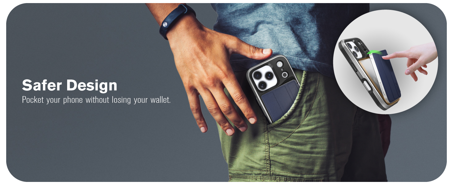 • [Patented Magnetic Wallet Case Compatible With iPhone 17 Pro]The vCommuteX line of cases combines unrivaled functionality and protection. The magnetic wallet securely stores IDs, credit or debit cards, or even transit cards; plus it does not interfere with Apple Pay. Compatible with iPhone 17 Pro.