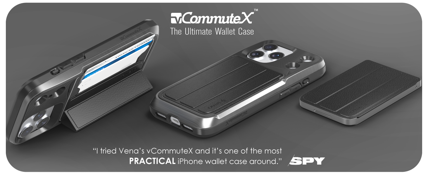 With the vCommuteX line of wallet cases, you get unparalleled protection and utility. Utilizing the iPhone's built in MagSafe magnets and tight tolerances, this wallet is easy to remove when needed but will not fall out of the phone during regular everyday use. The ability to remove the wallet from the back of the phone means you don’t have to remove the phone from the case to use other MagSafe accessories. Attaching via MagSafe means the wallet can also be used without the case on the phone.