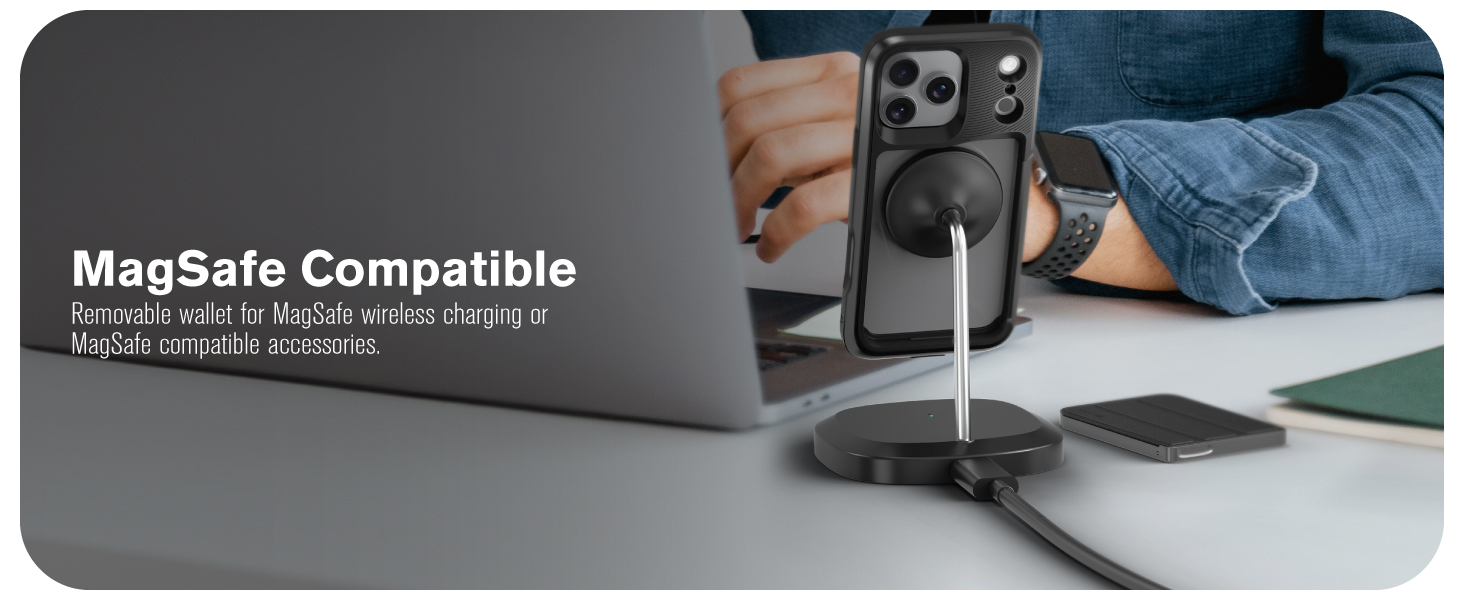 Removing the MagSafe mounted wallet from the case gives you access to your phones MagSafe functionality. This design allows you to continue to use your MagSafe accessories without removing the whole phone from the case.