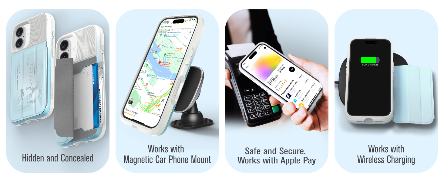[Patented Wallet Case Compatible With iPhone 17 (6.3")] vCommute combines functionality and protection. The hidden card slot securely stores IDs, credit or debit cards, or even transit cards; plus it does not interfere with Apple Pay. Compatible with iPhone 17 (6.3").